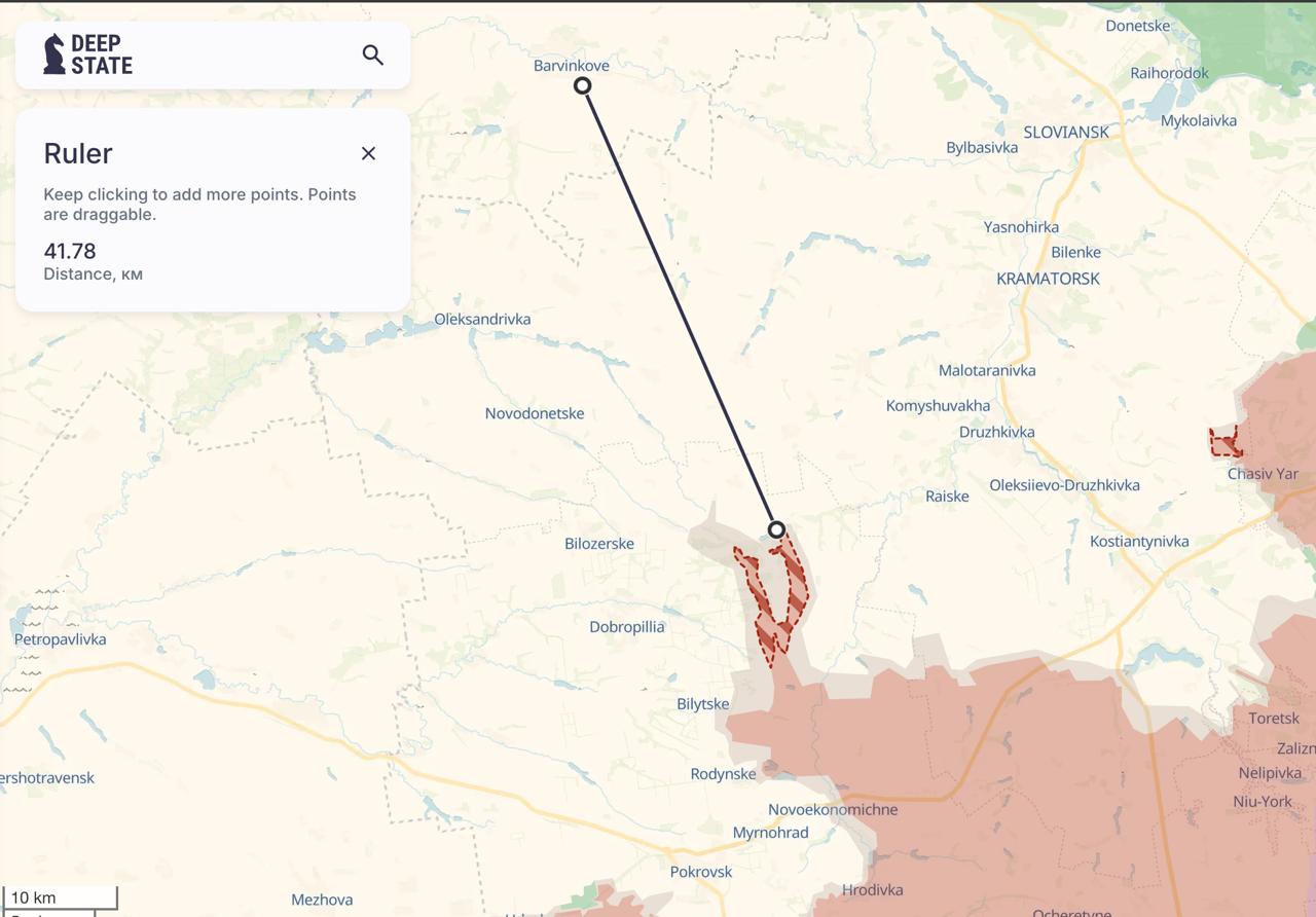 В результате 11-километрового (согласно украинским данным) рывка, россияне вышли к северо-востоку от Доброполья, перерезав дорогу на Краматорск и Константиновку.