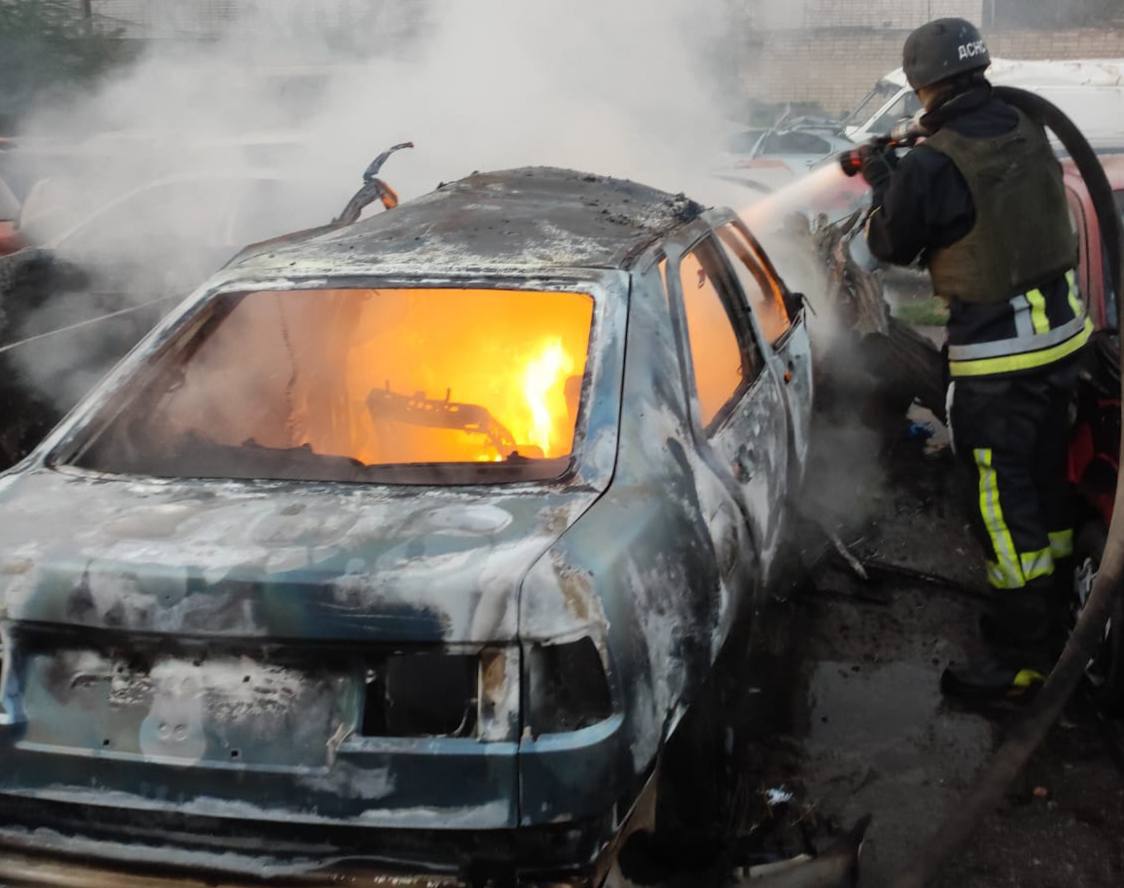 В Никопольском районе повреждены несколько автомобилей, одна машина уничтожена.