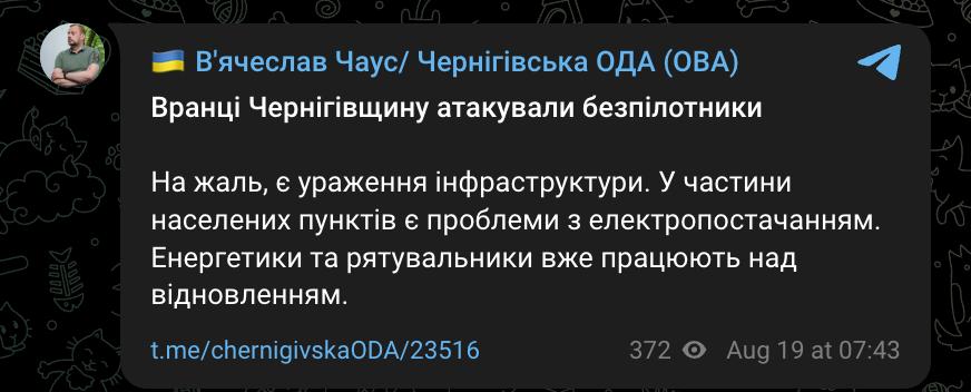 08:46 Утром Черниговскую область атаковали беспилотники.