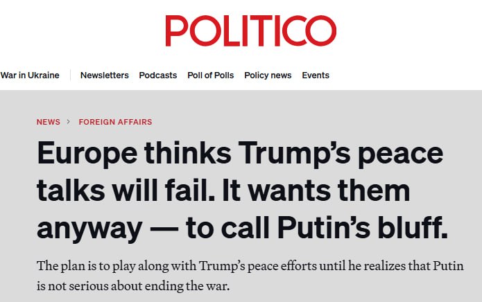 Ранее газета Politico писала, что Европа делает ставку на то, что Соединенные Штаты и Россия не договорятся об условиях мирного соглашения и сделки не будет.