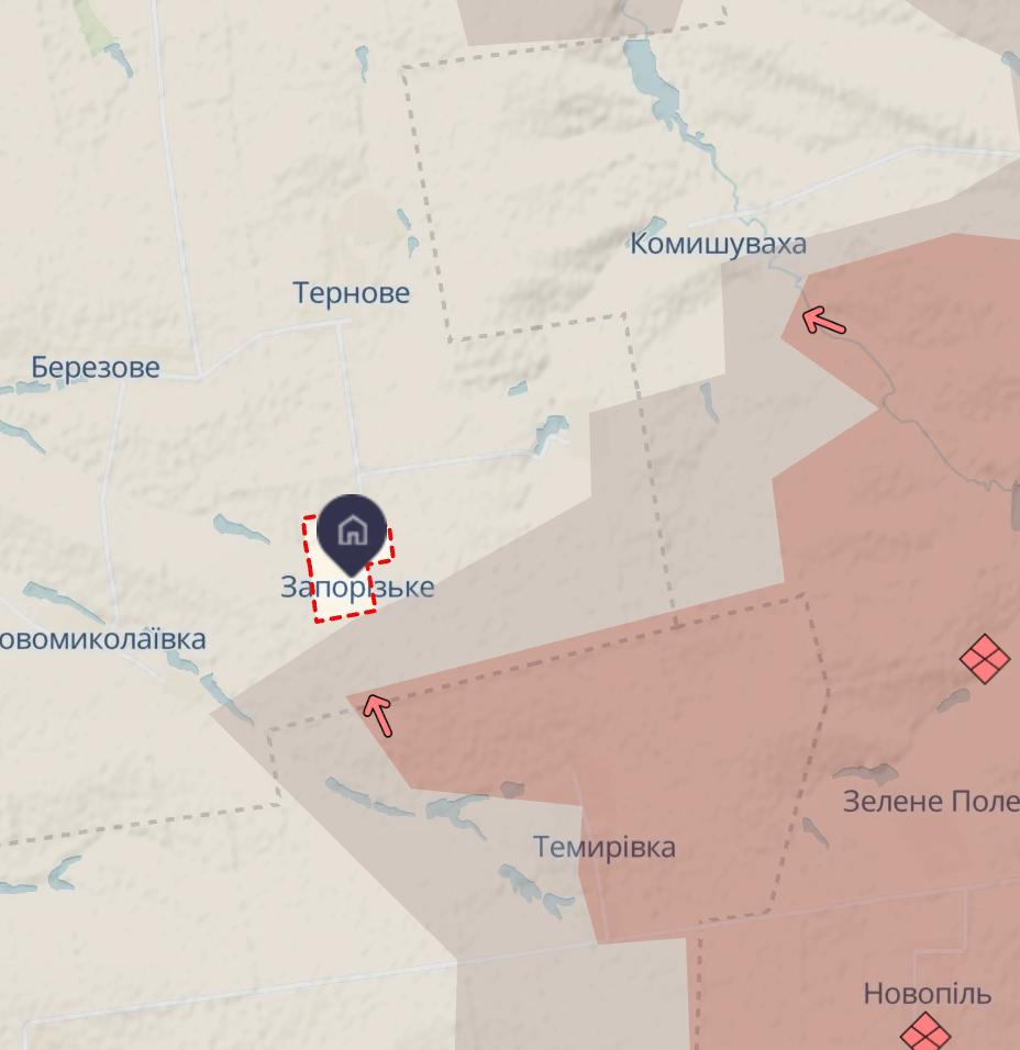Также показано продвижение ВСУ в Зеленом Гаю, однако полное его освобождение, о котором заявлял главком, пока на карте не фиксируется.