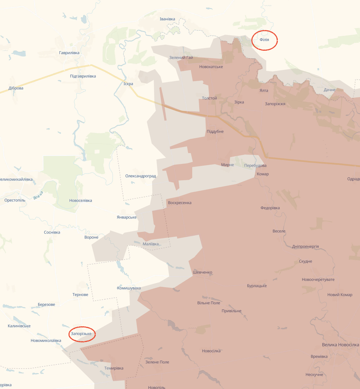Украина этого не подтверждала на картах Deep State населенные пункты находятся под контролем ВСУ, хотя возле них идут бои. При этом россияне уже опубликовали видео с флагом из Запорожского и Филии.