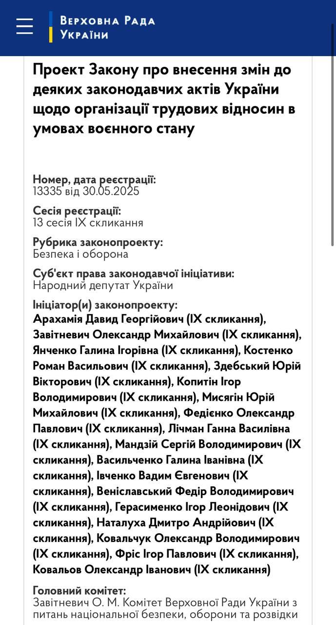 Верховная Рада Украины поддержала в первом чтении законопроект № 13335, позволяющий оборонным предприятиям со статусом критичности сразу бронировать новых сотрудников на 45 дней, чтобы их не мобилизовали при оформлении, а уже после работать над оформлением постоянной брони.