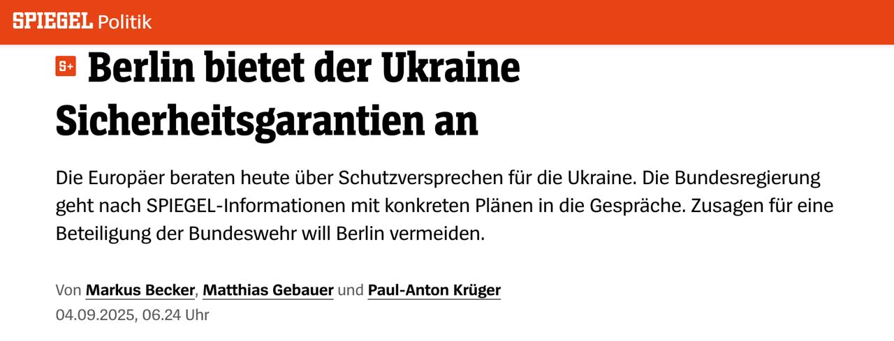 О вероятных гарантиях безопасности, которые может предоставить Европа, написал и немецкий Der Spiegel.