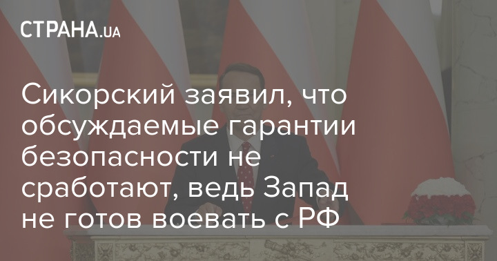Сикорский заявил, что обсуждаемые гарантии безопасности не сработают, ведь Запад не готов воевать с РФ