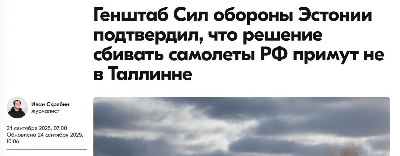 И в случае новых подобных инцидентов "решение об уничтожении нарушителей воздушных границ Эстонии тоже примут не в Эстонии".