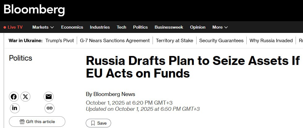 Россия разрабатывает меры против иностранных активов на фоне угроз ЕС - Bloomberg