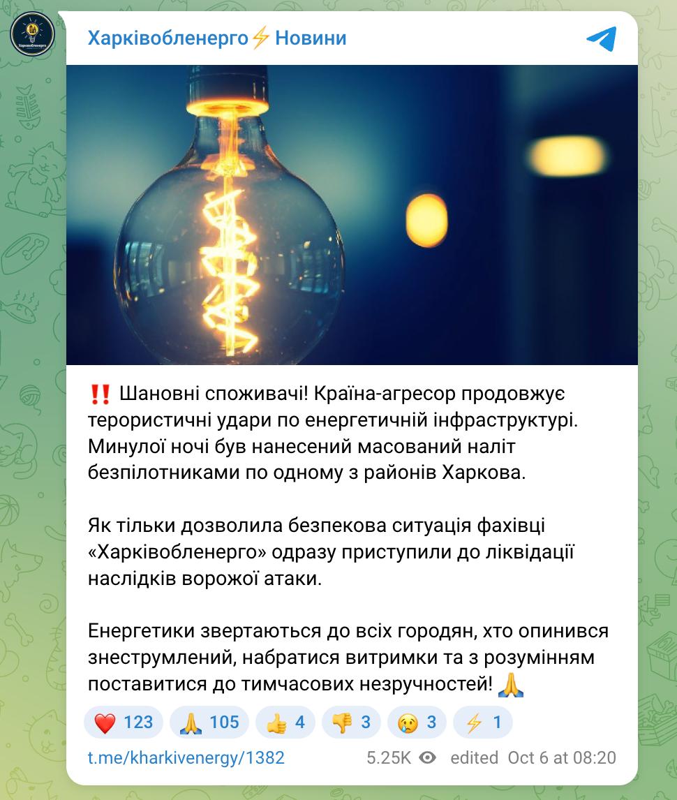 10:15 Часть Харькова осталась без света после прилетов, сообщают облэнерго и ОВА. Обесточены более 20 тысяч домовладений.
