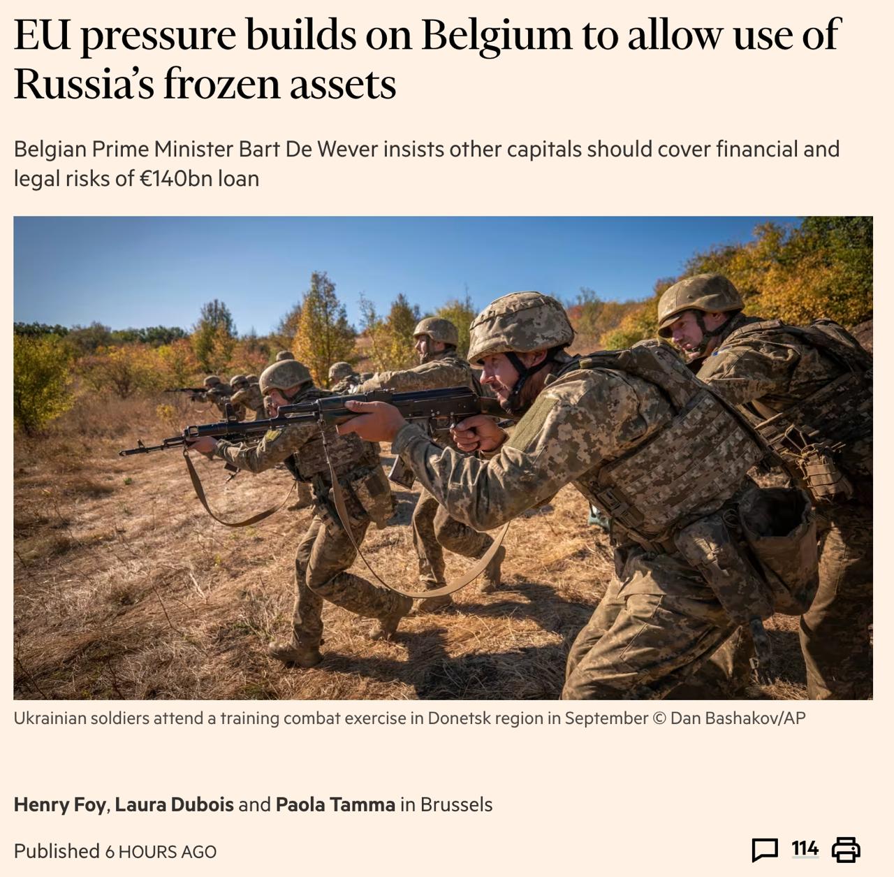 "Мы считаем, что риски для Бельгии здесь довольно ограничены. Это не значит, что риска нет вообще, и не значит, что мы не хотим вести серьёзный диалог с Бельгией… Но эти риски, вероятно, управляемы", — заявил высокопоставленный представитель ЕС.