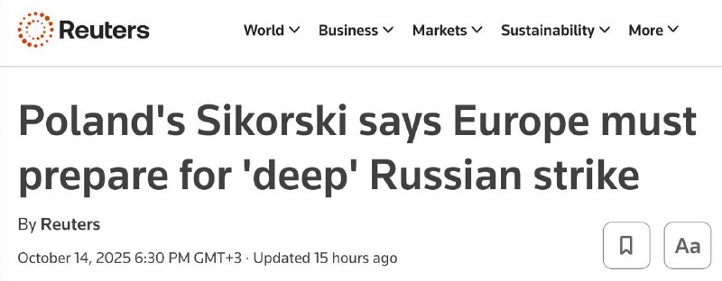 Также министр предупредил, что Европа должна быть готова к российскому удару вглубь региона, назвав безответственным отказ создавать оборонительные сооружения, такие как стена беспилотников на восточном фланге. Сикорский призвал европейские страны "продолжать поддерживать Украину" и выразил надежду, что президент США Дональд Трамп предоставит стране дальнобойные ракеты "Томагавк" для усиления ударов по российской инфраструктуре.