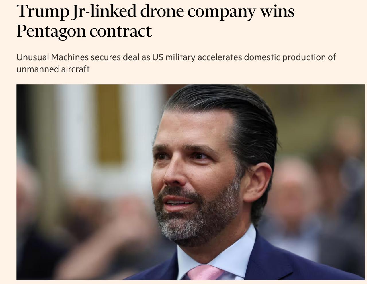 Связанная с сыном Трампа компания получила крупный контракт от Пентагона на поставку запчастей для дронов - FT