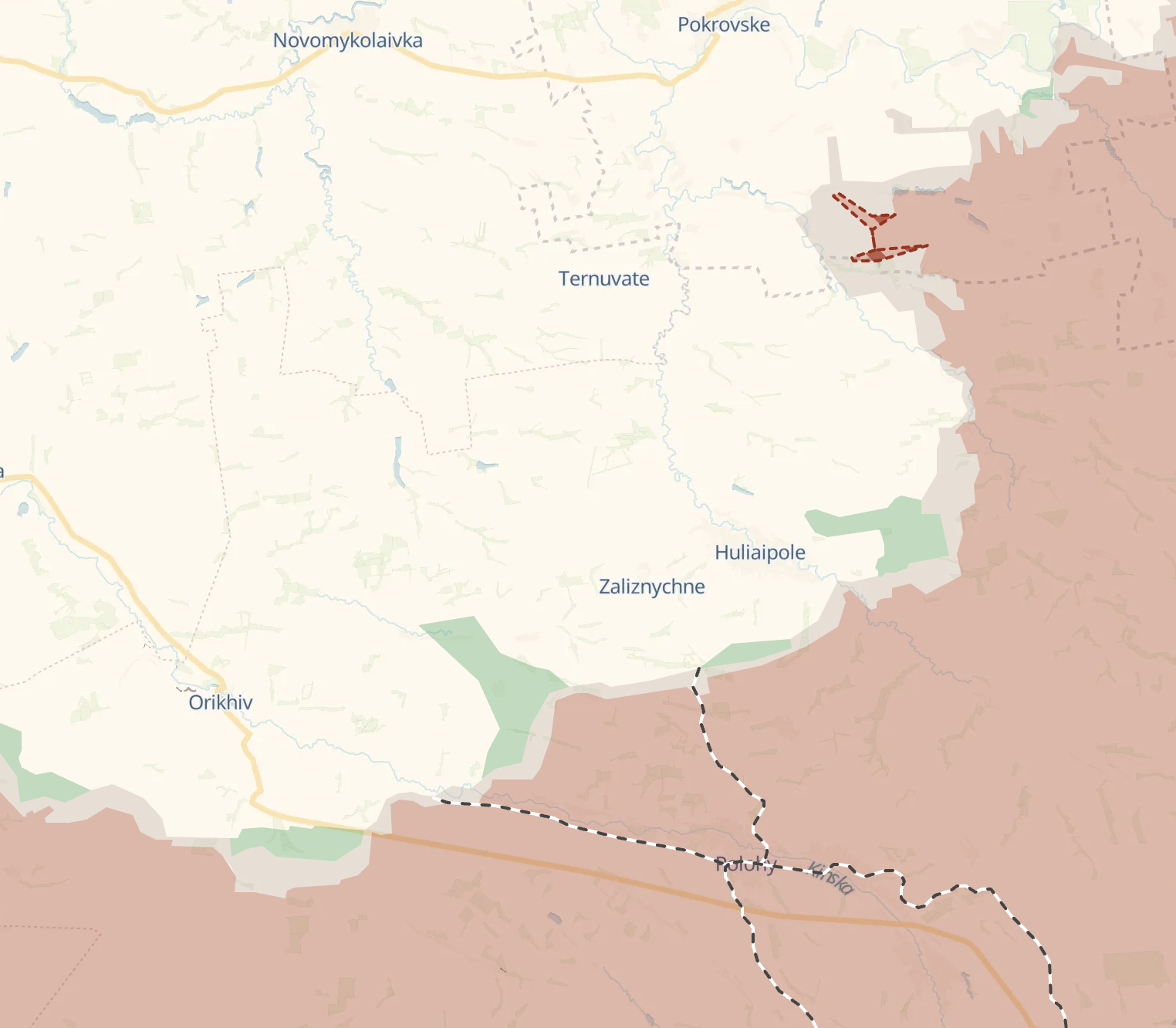 Также от Егоровки остается чуть больше четырех километров до трассы из Покровского на Гуляйполе, которая, похоже, переходит под плотный огневой контроль РФ.