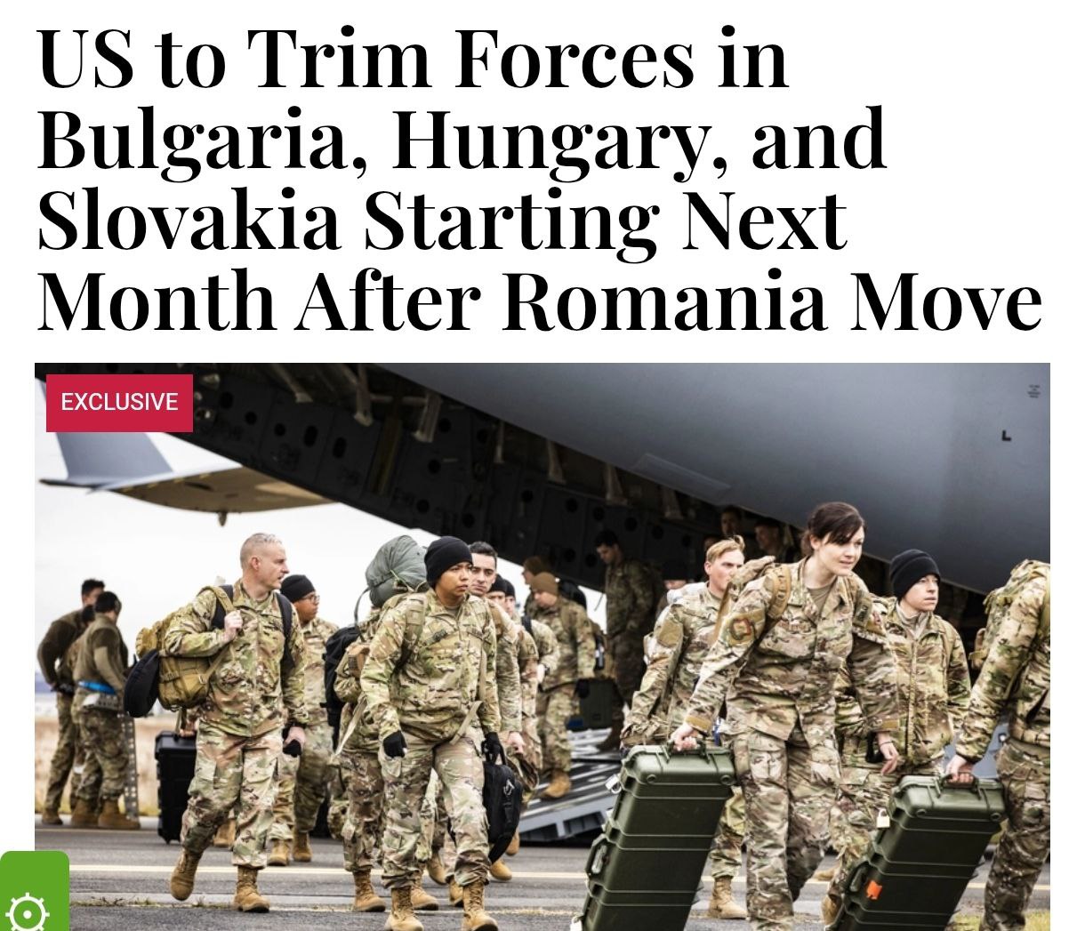 Издание подтверждает, что за снижением военного присутствия в Румынии последуют аналогичные "корректировки" в Болгарии, Венгрии и Словакии. Вывод войск оттуда начнётся уже с середины декабря.
