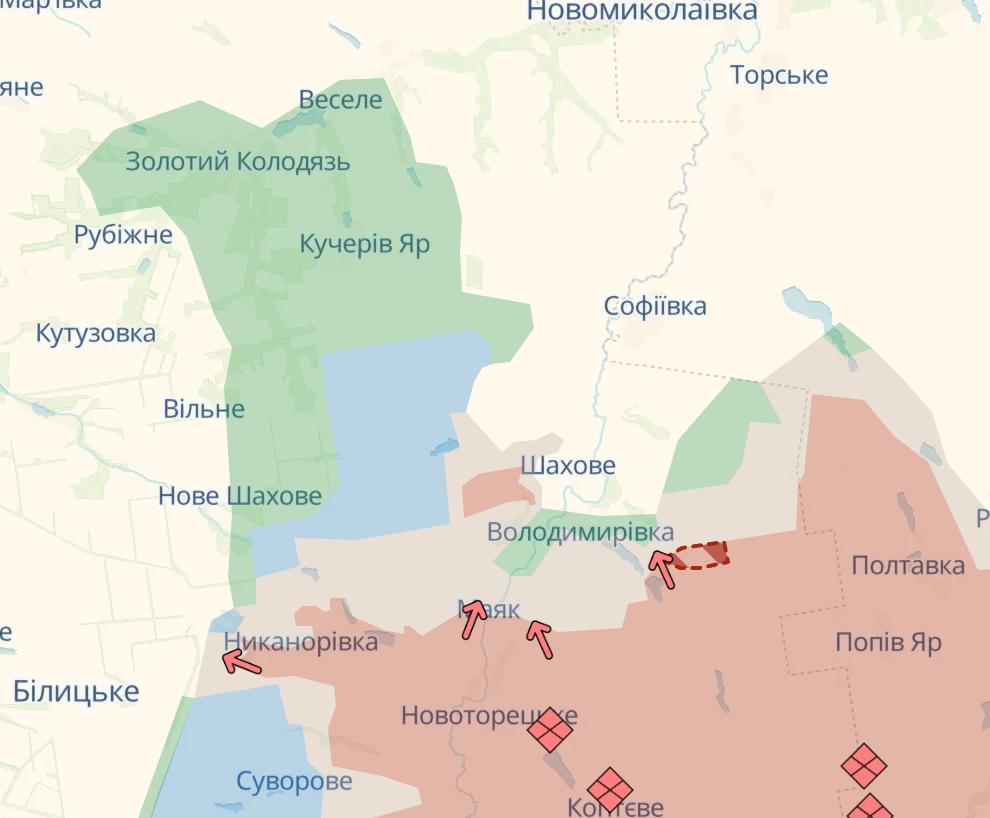 10:52 Армия РФ продвинулась около Волчанска и Владимировки, что южнее добропольского выступа, сообщает Deep State.
