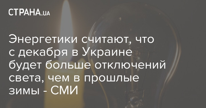 Энергетики считают, что с декабря в Украине будет больше отключений света, чем в прошлые зимы - СМИ