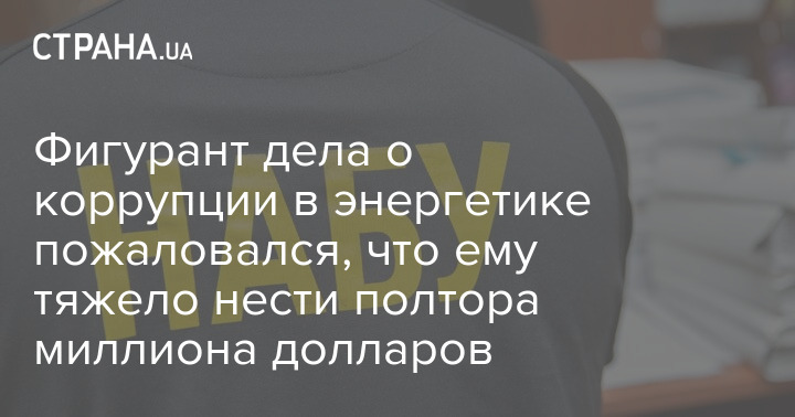 Фигурант дела Национального антикоррупционного бюро Украины (НАБУ) о коррупции в энергетике некий Рёшик жаловался, что ему было сложно нести 1,6 млн долларов.