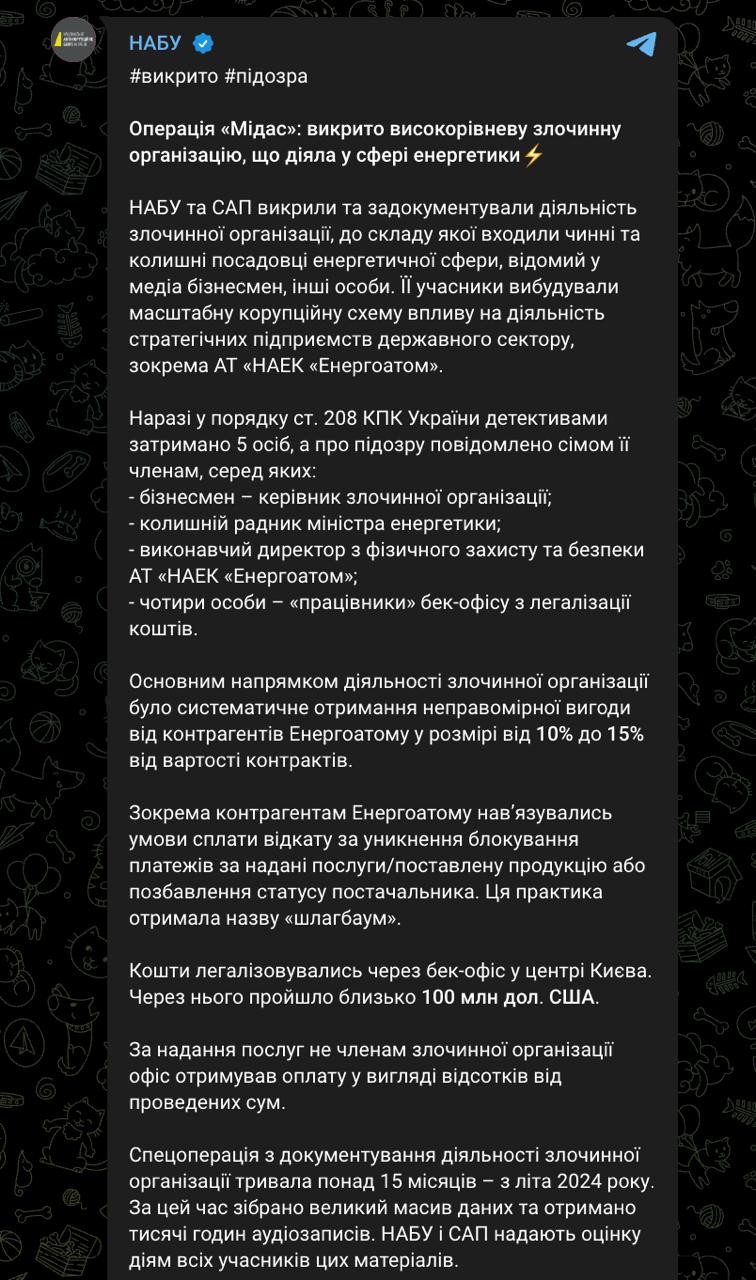 Также Миндич, похоже, получил подозрение по делу о коррупции в "Энергоатоме".