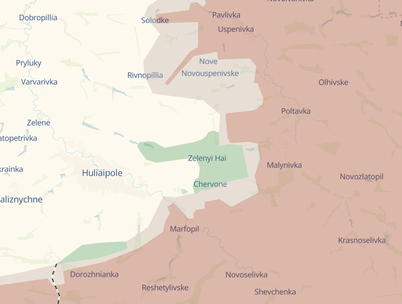 Deep State пишет, что это создает угрозу для Гуляйполя (российские позиции уже в 10 км от города), так как открывается новое оперативное направление с севера, что усложняет оборону позиций в Зеленом Гае и Высоком. Бои идут уже за Ровнополье, Сладкое и Яблоковое.