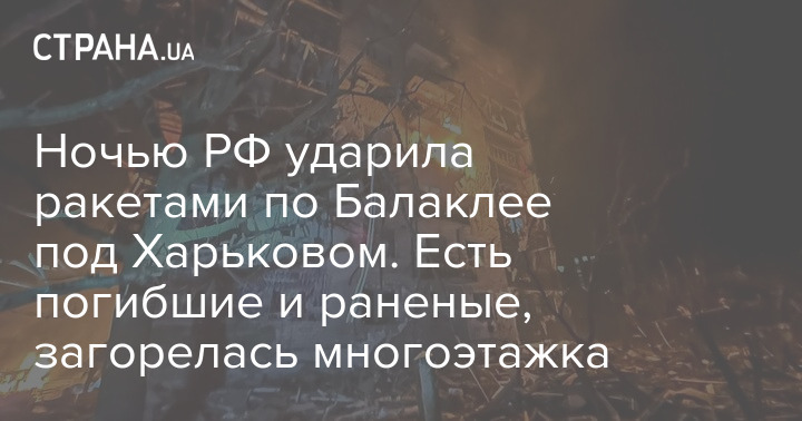 Ночью РФ ударила ракетами по Балаклее под Харьковом. Есть погибшие и раненые, загорелась многоэтажка
