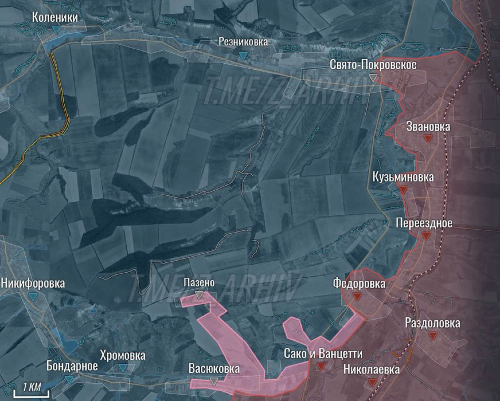 Российские военные паблики также пишут о динамике в этом районе - в частности, о продвижении в районе села Пазено, неподалеку от Приволья.
