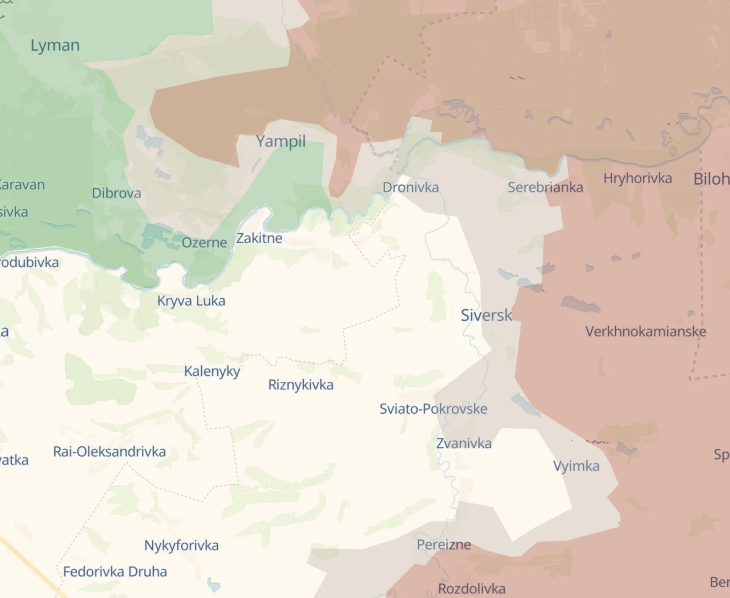 Российские войска продвигались под Северском, а также в районе Ямполя. Сейчас к югу от Северска в районе Выемки формируется "мешок".