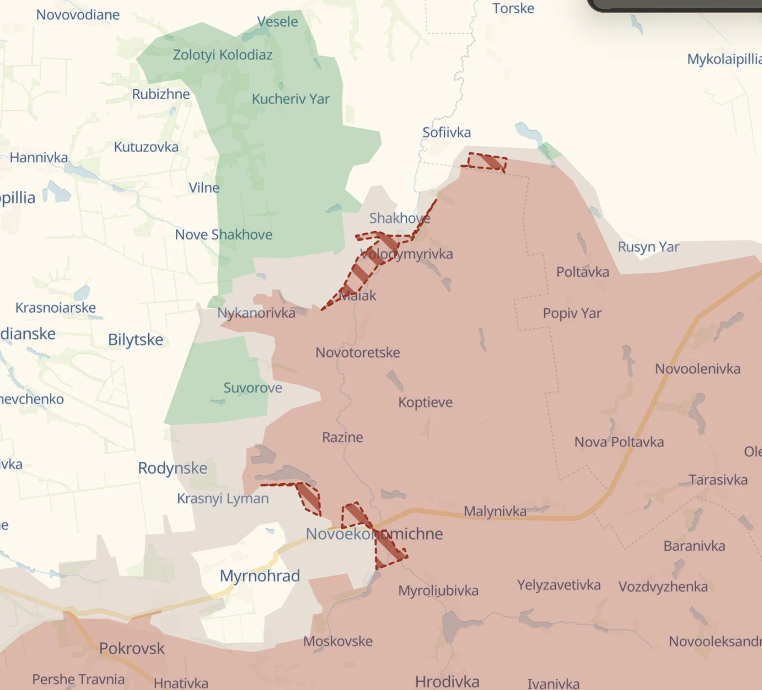 Россияне продвинулись к востоку от Мирнограда, а также севернее, у основания бывшего Добропольского выступа. Об этом сообщает военный паблик Deep State.