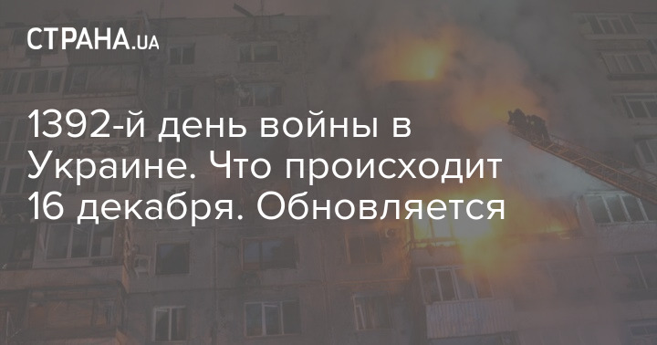 Во вторник, 16 декабря, в Украине идет 1392-й день войны с Россией.