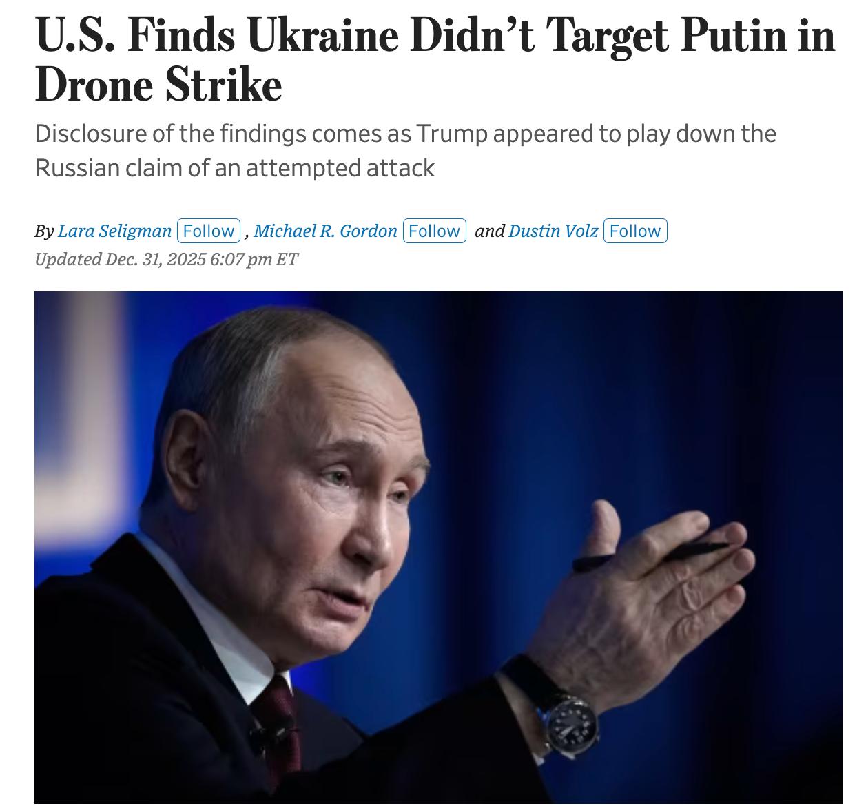 ЦРУ доложило, что украинские дроны не целили по резиденции Путина - WSJ