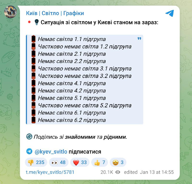 Также каналы приводят ориентировочное время отсутсвия электричества: