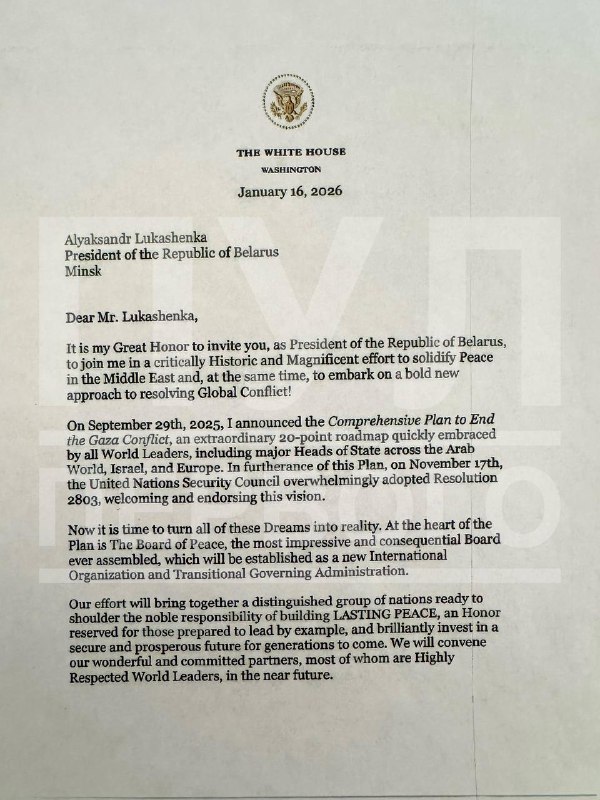 Президент США Дональд Трамп предложил российскому и белорусскому коллегам Владимиру Путину и Александру Лукашенко войти в Совет мира, который будет управлять сектором Газа.