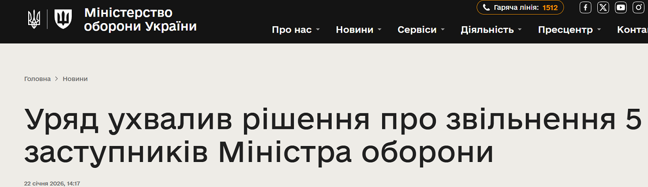 Кабинет министров Украины принял решение об увольнении пяти заместителей министра обороны Михаила Федорова.