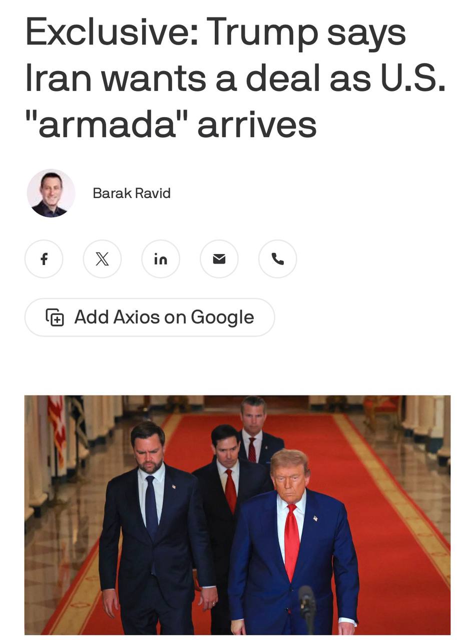 "Они хотят сделку". Трамп допустил дипломатическое решение по Ирану, несмотря на отправку ударной армады