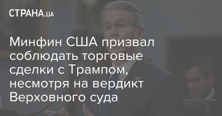 Министр финансов США Скотт Бессент призвал страны соблюдать заключенные с американским лидером Дональдом Трампом торговые договоренности, несмотря на решение Верховного суда об отмене пошлин.