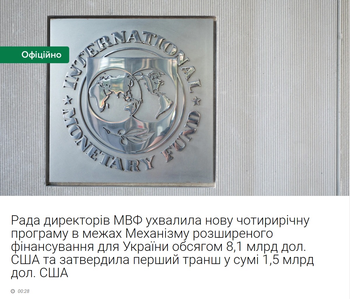 МВФ одобрил новую кредитную программу для Украины на 8 миллиардов долларов