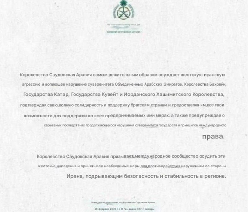Саудовская Аравия и ОАЭ якобы объявили войну Ирану и присоединяются к ударам по нему.