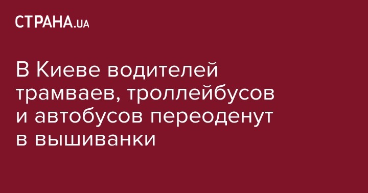 В четверг, 18 мая, украинцы будут отмечать Всемирный День Вышиванки. Коммунальное предприятие "Киевпасстранс" в этот день планирует переодеть водителей в национальную одежду. Об этом сообщает пресс-служба предприятия.