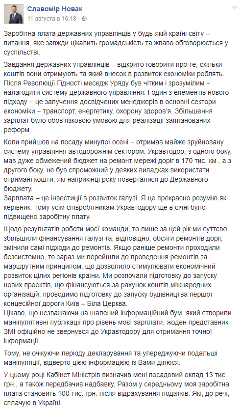 Об этом на своей странице в Facebook написал и. о. главы "Укравтодора" Славомир Новак.