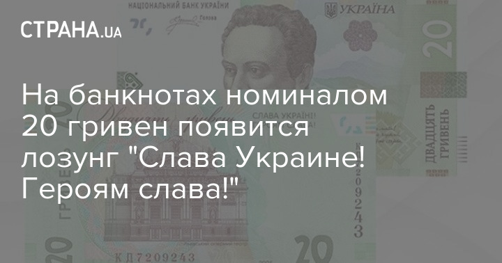 Національний банк України в рамках планового випуску з сьогодні вводить в обіг модифіковані банкноти номіналом 20 гривень. У правій верхній частині на зворотному боці оновлених банкнот розміщено гаслом "Слава Україні! Героям слава!".