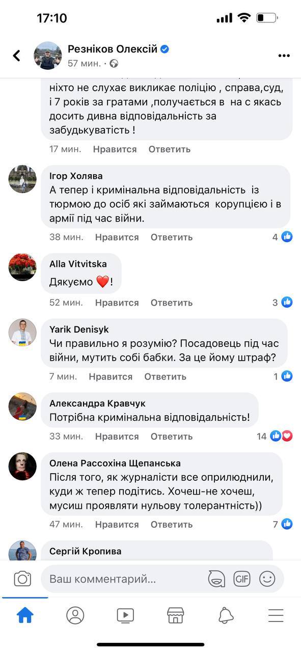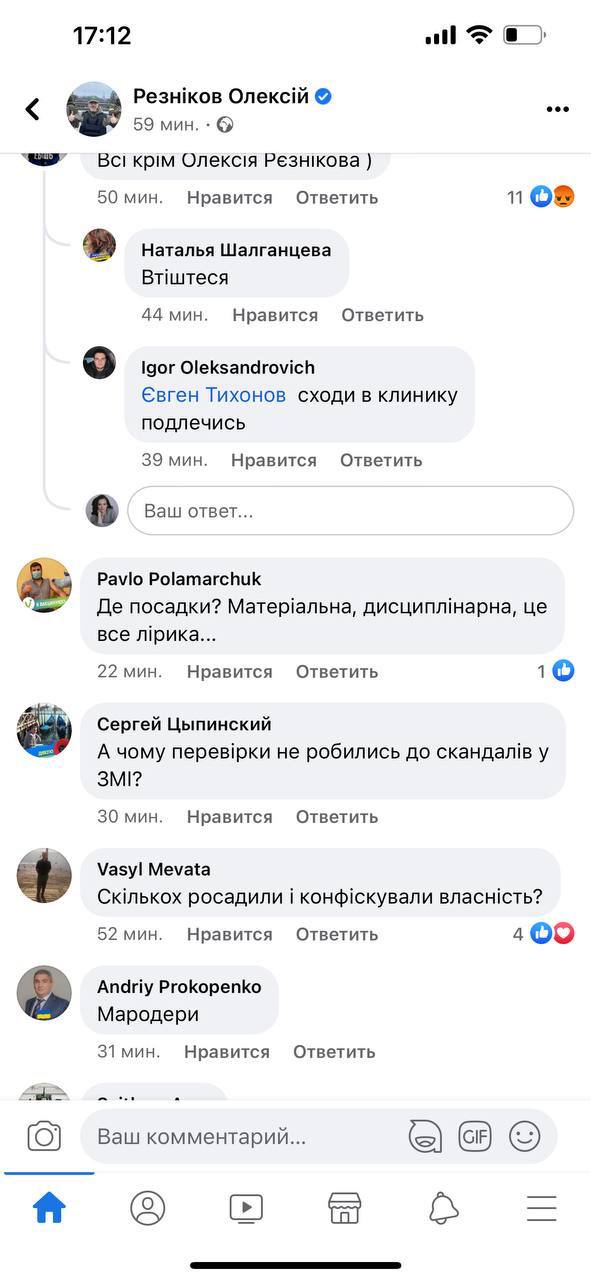 Під постом Резнікова з'явилося багато гнівних коментарів: