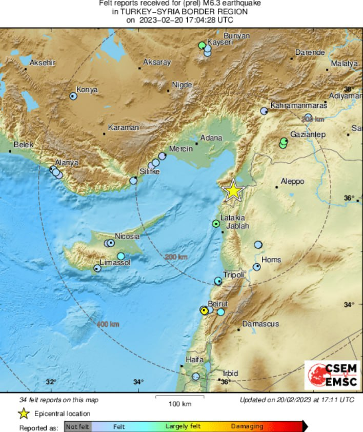 Новий землетрус магнітудою 6,3 стався на кордоні Туреччини та Сирії.