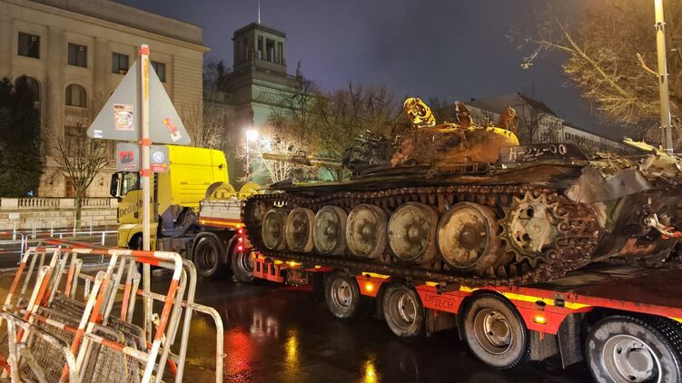 Російський танк Т-72, підбитий у Бучі, встановили під посольством РФ у Німеччині "як нагадування про війну в Україні".