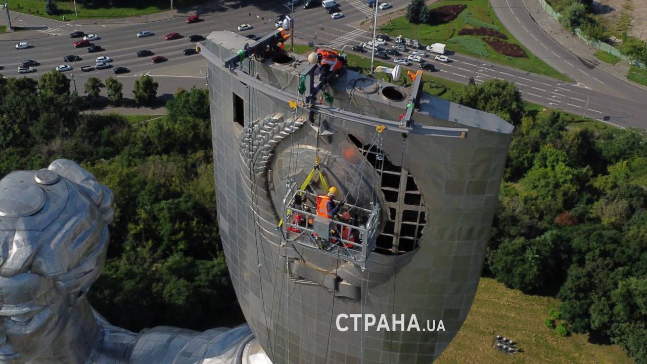 У Києві знімають радянські символи із монумента "Батьківщина-мати". Фото: "Країна"