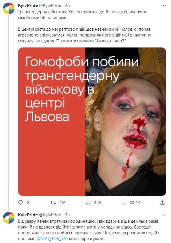 У центрі Львова чоловік побив трансгендерну військову на ім'я Хелен