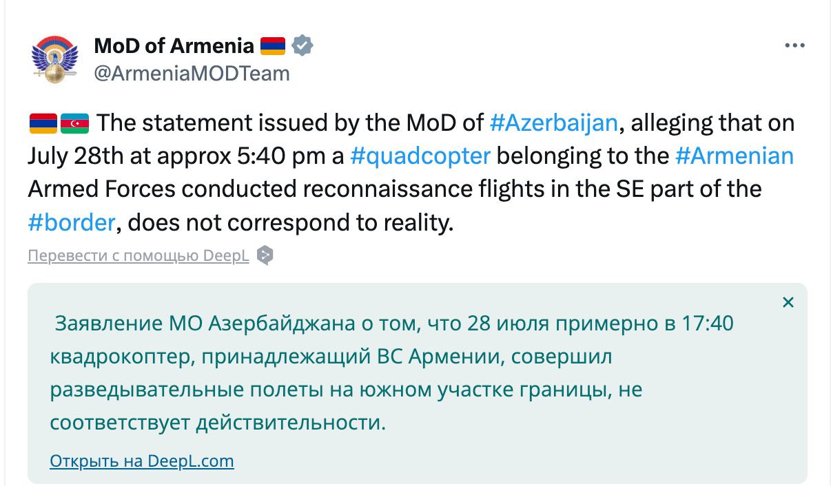 Вірменія сьогодні відповіла, що це "не відповідає дійсності".