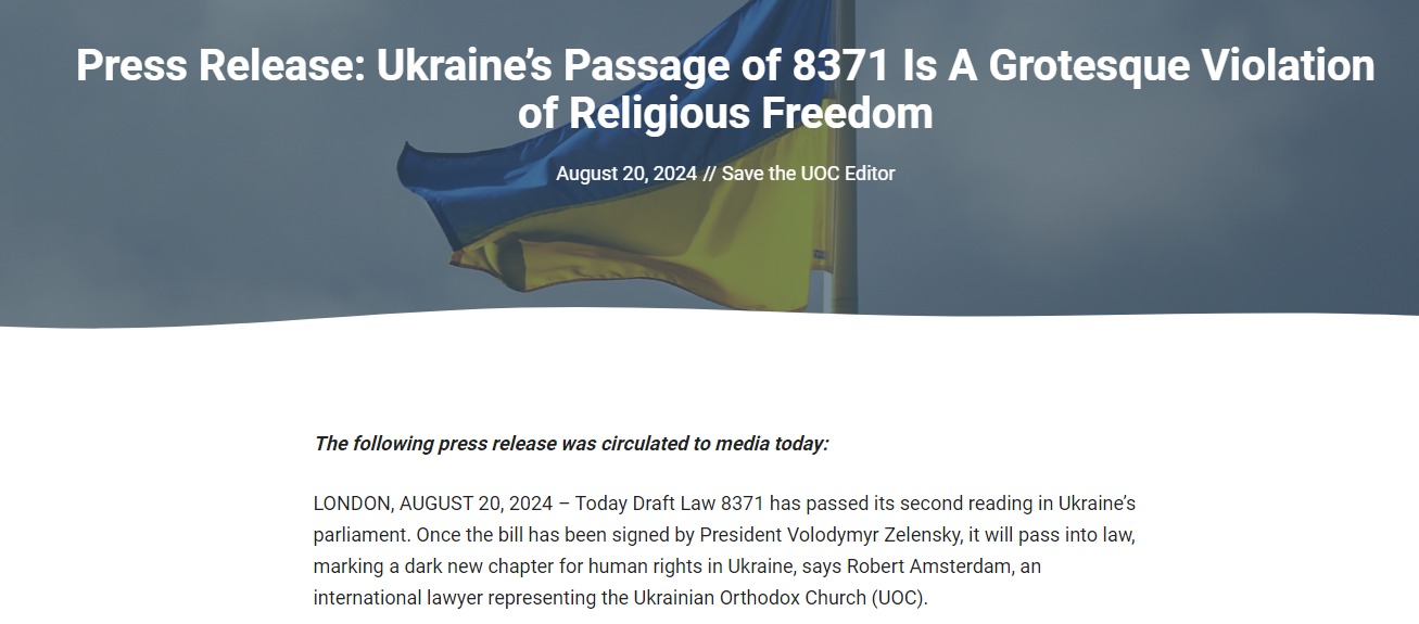 Адвокат Української православної церкви Роберт Амстердам назвав ухвалений сьогодні Верховною Радою законопроект про фактичну заборону церкви "релігійним чищенням" та "новою чорною сторінкою в історії порушень прав людини в Україні".