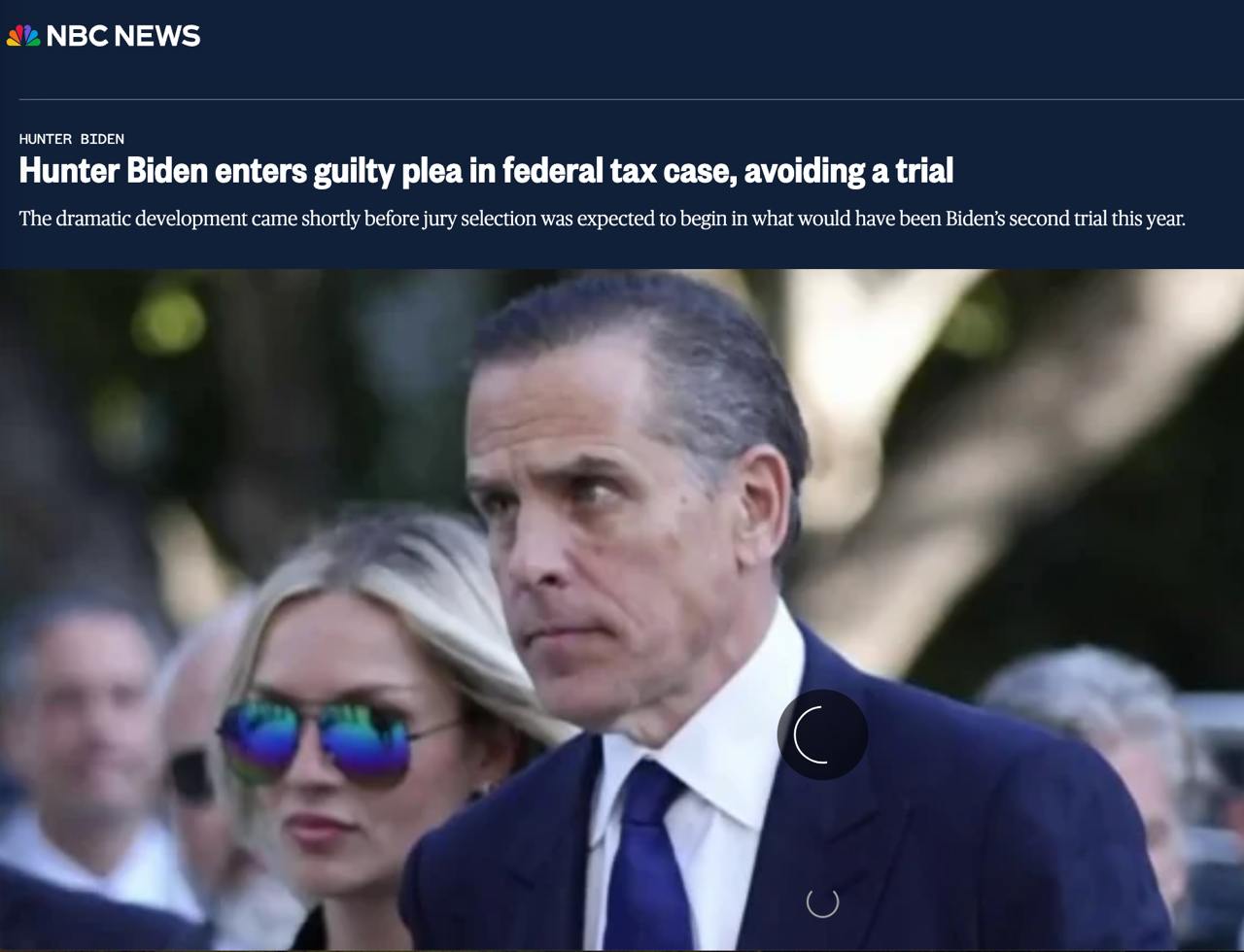 Синові президента США Хантеру Байдену загрожує ув'язнення. Він визнав провину за всіма пунктами звинувачення у справі про несплату податків на 1,4 мільйона доларів і пояснив свою провину залежністю від наркотиків.