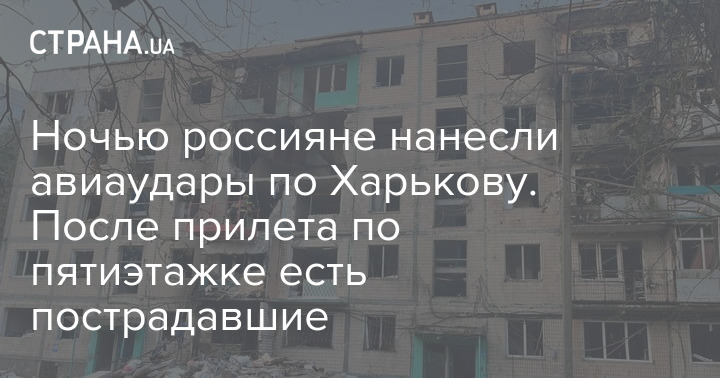 Вночі росіяни завдали авіаударів по Харкову. Після прильоту до п'ятиповерхівки є постраждалі