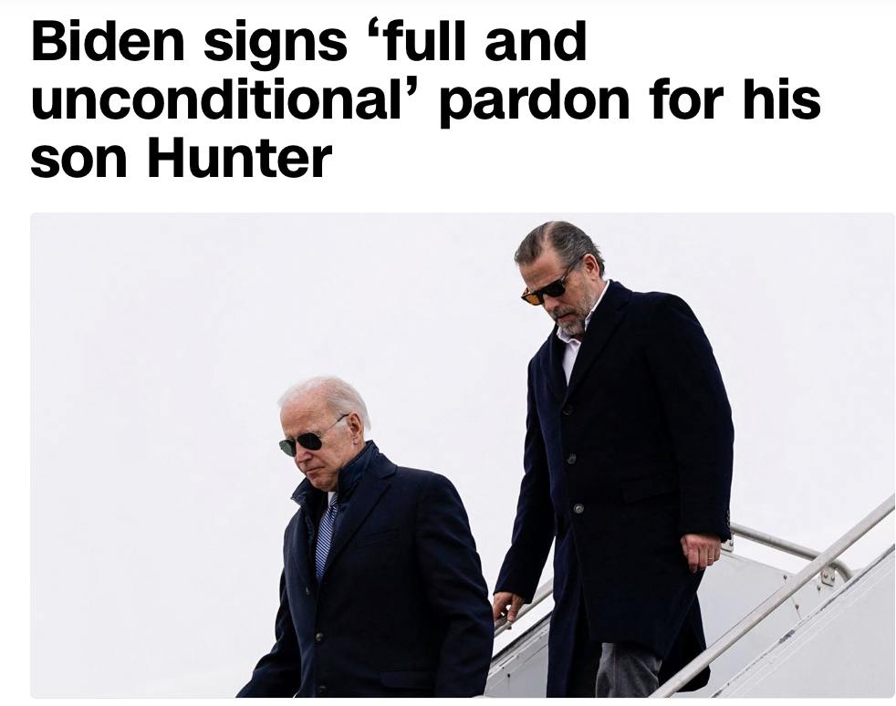 Президент США Джо Байден помилував свого сина Хантера Байдена, якого було визнано винним у двох кримінальних справах, і вiн чекав на вироки.
