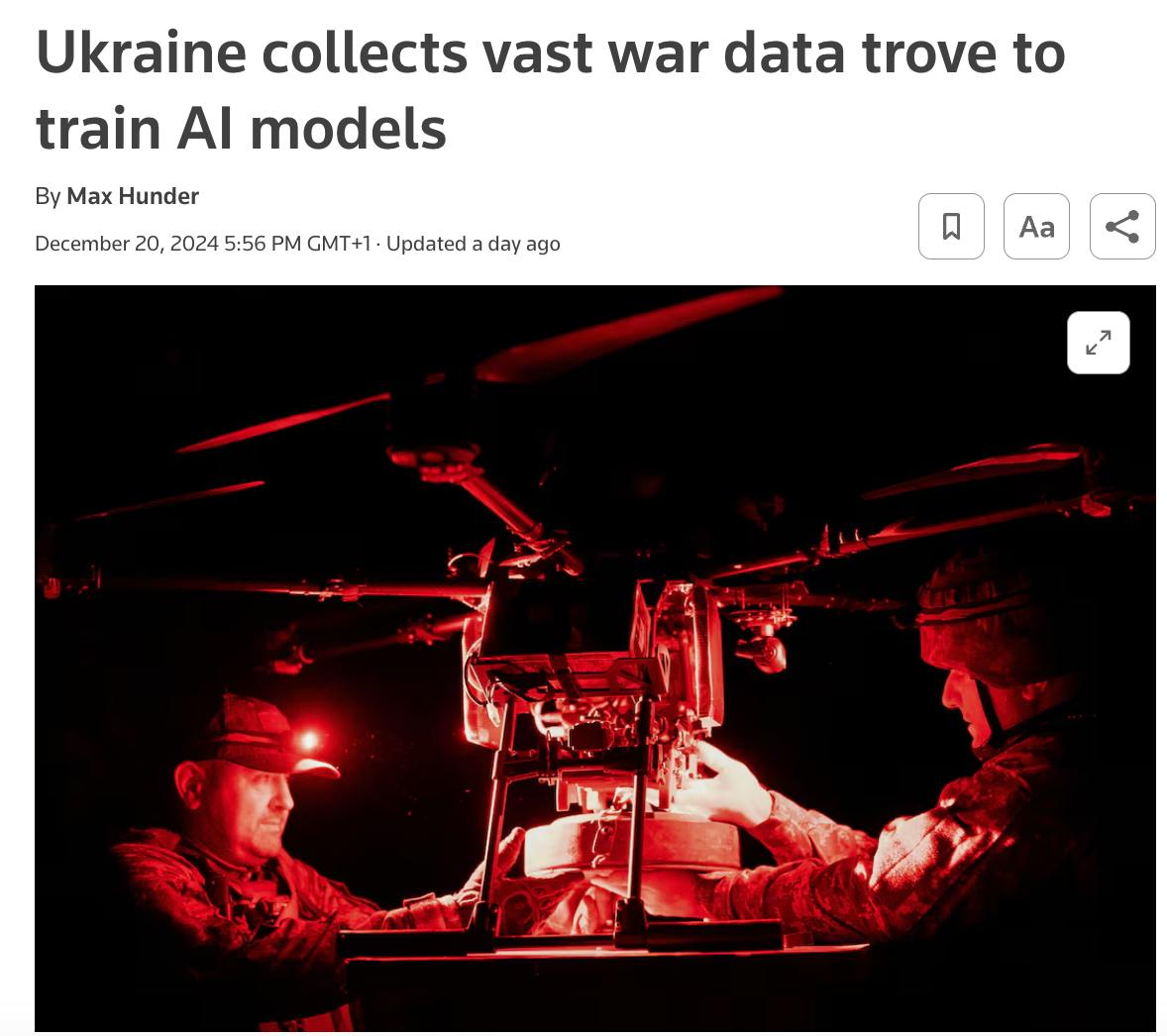 Україна швидкими темпами навчає штучний інтелект управлінню дронами. ЗСУ мають мільйони годин відеозаписів з дронів, які можуть використовуватися для навчання ШІ, щоб він міг самостійно приймати рішення на полі бою.