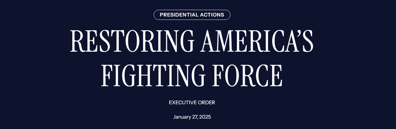 У тексті другого документа йдеться, що Трамп прихильний до "викорінення расової та статевої дискримінації у Збройних силах США" і "жодна особа чи група в наших Збройних силах не повинні бути привілейованими або ущемленими за ознакою статі, раси, етнічної приналежності, кольору шкіри або віросповідання ". Проте в останні роки цивільне та військове керівництво "впровадило програми різноманітності, рівності та інклюзії (DEI) і супутні їм расові та статеві переваги у Збройних силах", що підриває згуртованість підрозділів та боєздатність армії, а також ображає американців через статеву дискримінацію.
